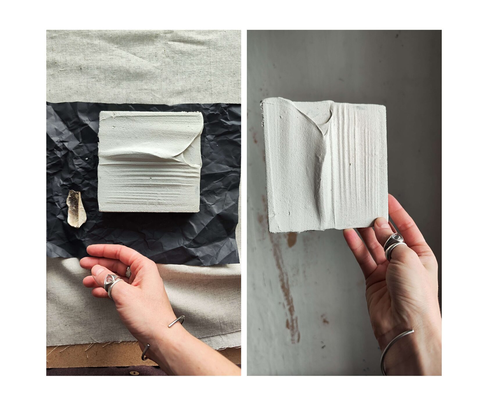 Фактурные работы Сейчас я работаю над серией холстов и панно под общим названием «Касания». Здесь о рельефах и шероховатостях, о тактильности и теплоте материалов. Лен, хлопок, органза, шелк сочетаются с текстурами песка, текстурного гипса, глины и папье маше.