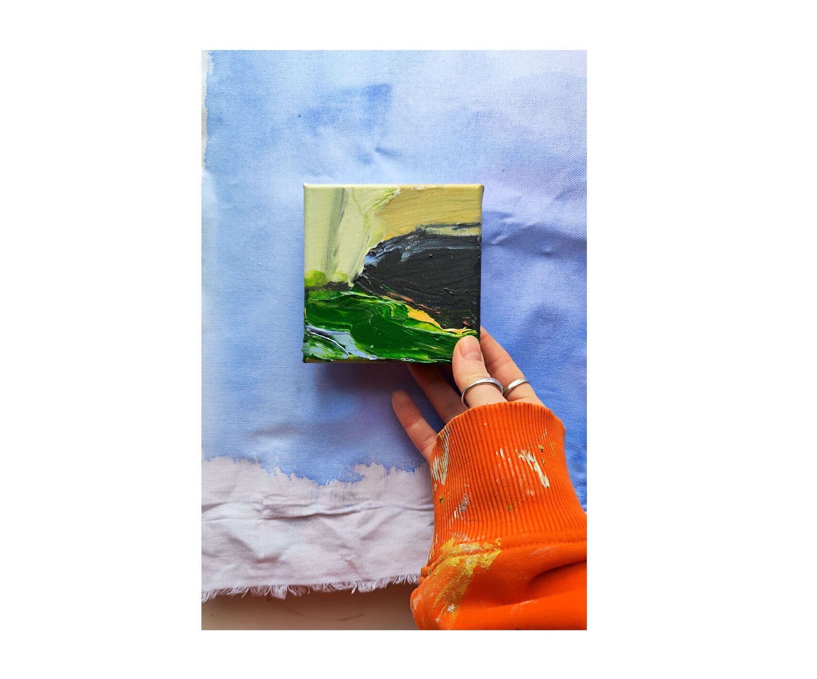 Для меня эта картина про самый искренний зеленый цвет. Такой можно увидеть в апреле, когда новая трава пробивается к свету за считанные часы теплого солнца. Тогда еще пахнет снегом и свежим зеленым цветом травы. из серии «Месторождения», 2025г